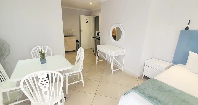 - Additional Features: Private balcony (please note: no braai facilities). Complimentary bathroom amenities. Partial sea view, facing the guest house.